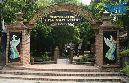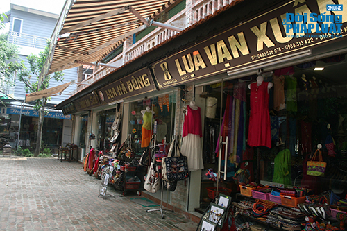 | Khu vực trung tâm làng Vạn Phúc, nơi có các gian hàng được tuyển chọn chỉ bán lụa "chuẩn Hà Đông". |