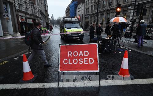 Cảnh sát phong tỏa một tuyến đường ở London sau vụ tấn công ngày 23/3. Ảnh: EPA/TTXVN |