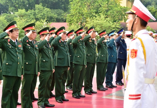 | Đoàn đại biểu Bộ Quốc phòng kính viếng các anh hùng, liệt sĩ. Ảnh: VGP/Nhật Bắc |
