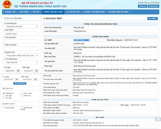 Thông tin về sự việc trước đó, theo báo Giao Thông, sáng 31/7, trên mạng xã hội Facebook xuất hiện thông tin Sở LĐTB&XH tỉnh Hà Tĩnh mở gói thầu đấu thầu rộng rãi với nội dụng: "Mua sắm lễ thắp hương thờ cúng Liệt sỹ nhân dịp kỷ niệm ngày 27/7". Giá mở thầu là 4.757.200.000 đồng.