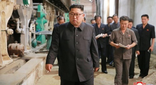 Ông Kim Jong-un đi thị sát ở nhà máy tại khu vực Sinuiju. Ảnh: KCNA |