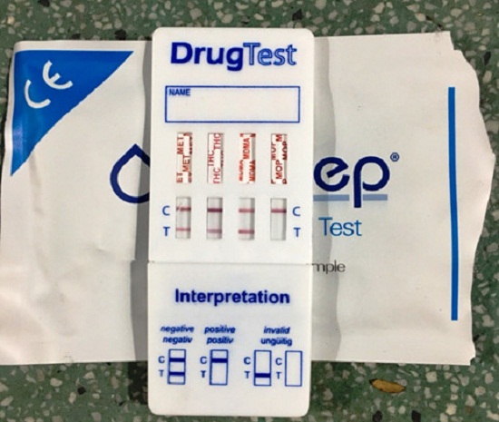 Que thử nước tiểu cho thấy hai vạch là bình thường, 1 vạch là dương tính với ma túy. Ảnh: Thanh Niên |
