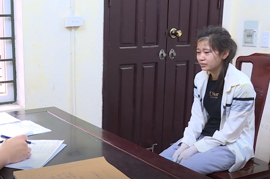 Nghi phạm Vi Thị Dung tại cơ quan Công an. |