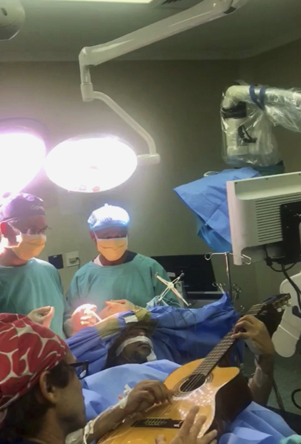 Nhạc sĩ người Nam Phi Musa Manzini đã chơi guitar trong suốt 6h diễn ra cuộc giải phẫu hộp sọ để giữ cho não bộ thanh tỉnh, giúp ca mổ được thành công.