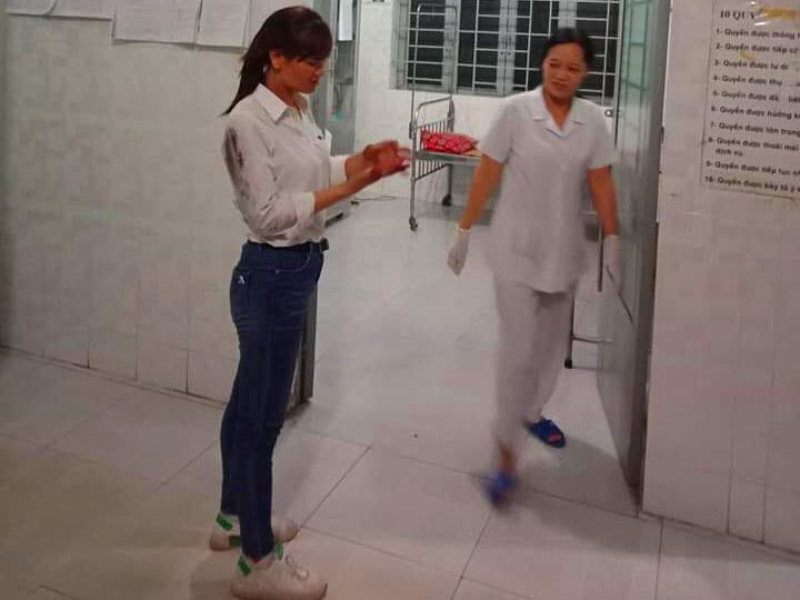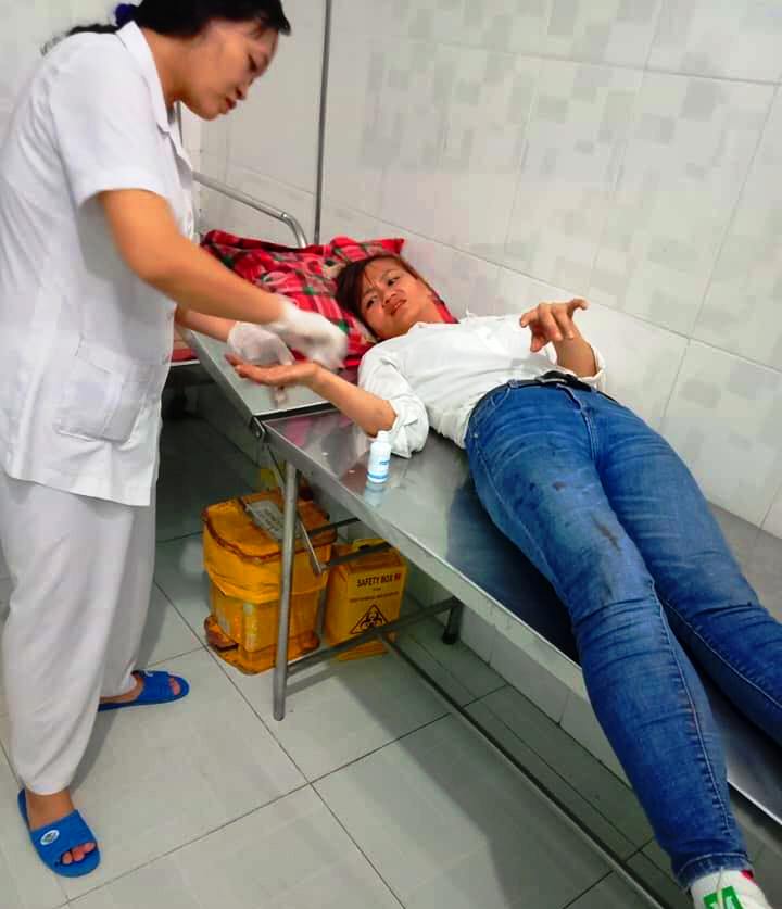 Chị Nga phải nhập viện sau khi giằng co để thoát thân trước lưỡi dao của 2 tên cướp. |
