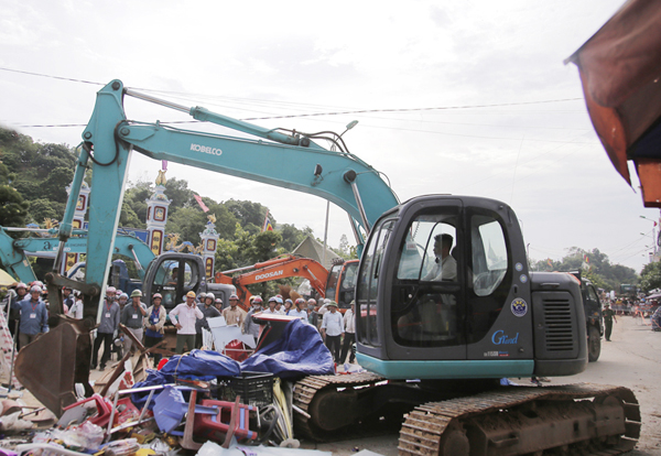 7 giờ 30 phút, sau khi đọc quyết định cưỡng chế, lực lượng chức năng đã tuyên truyền qua loa phóng thanh, yêu cầu các hộ kinh doanh chấp hành quyết định của Nhà nước, tự tháo dỡ công trình vi phạm và di chuyển ra khỏi khu vực cưỡng chế.