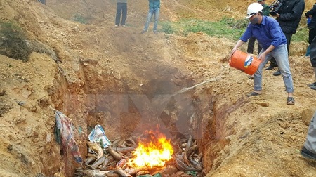 Tiêu hủy cá tầm nhập lậu - Ảnh: Báo TTXVN |