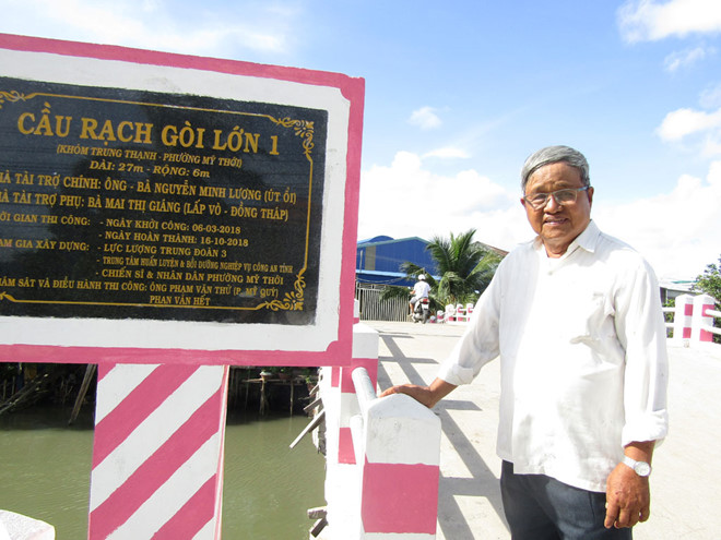 Báo An giang cho biết thêm, với mỗi cây cầu giao thông nông thôn, ông Út Ổi bỏ tiền túi ra tài trợ từ 500-600 triệu đến hơn 1 tỷ đồng nhưng khi hỏi đã xây được bao nhiêu cây cầu, ông không nhớ chính xác.