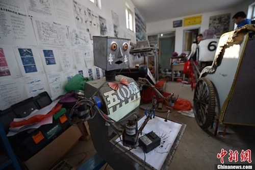 Ngôi nhà của ông nông dân Wu Yulu, người chỉ học hết chương trình tiểu học, chứa đầy những con rô bốt mà ông đã sáng tạo ra.