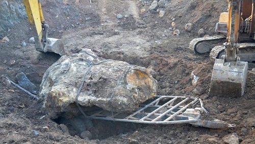 Tuy nhiên, ông Thanh vẫn tiếp tục thuê người đào tảng đá lên khỏi mặt đất. Hòn đá dài 4m, rộng 3,5 m, cao 1,3 m, ước nặng gần 30 tấn.