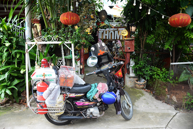 Cũng gần 10 năm kể từ ngày ông Thơm chế ra chiếc xe cứu thương di động từ chiếc xe gắn máy đi làm hằng ngày của mình.