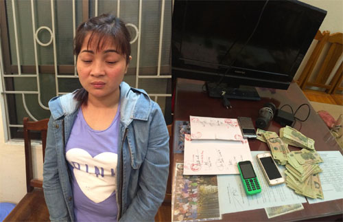 | Đối tượng Dung và tang vật tại cơ quan công an. |