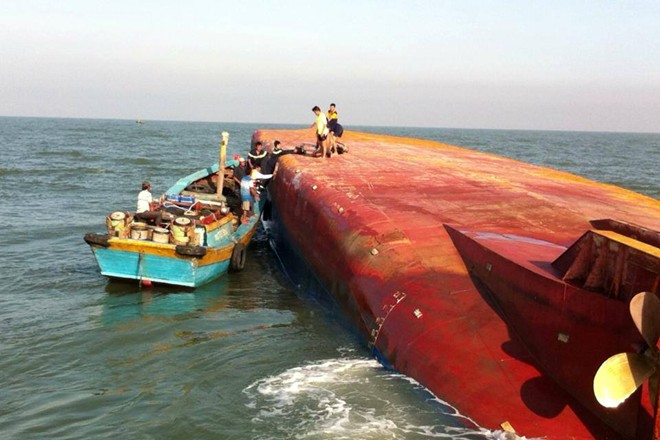 23h40, vị trí tàu Hoàng Phúc chìm vẫn chưa được xác định.