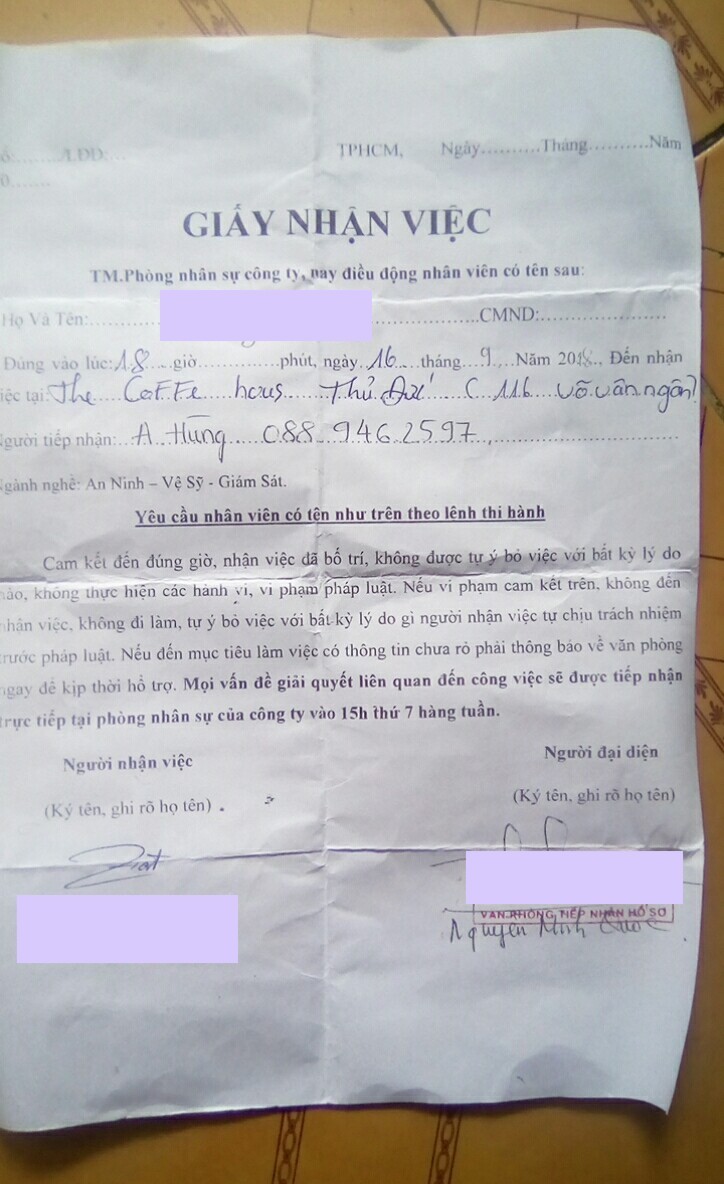 Tương tự, nhiều người cũng nhận được "giấy nhận việc" nhưng thực chất không hề có việc hoặc việc không đúng như giới thiệu. |
