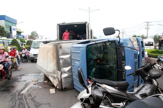 Lúc 16h30 ngày 7/9, xe tải chở khoảng 500 thùng bia chạy trên đường Trường Chinh, hướng từ quận Tân Bình đi quận 12 (TP HCM) với tốc độ khá nhanh. Vừa qua khỏi giao lộ Phạm Văn Bạch - Trường Chinh (thuộc phường 15, quận Tân Bình) xe mất lái dẫn đến lật nhào.
