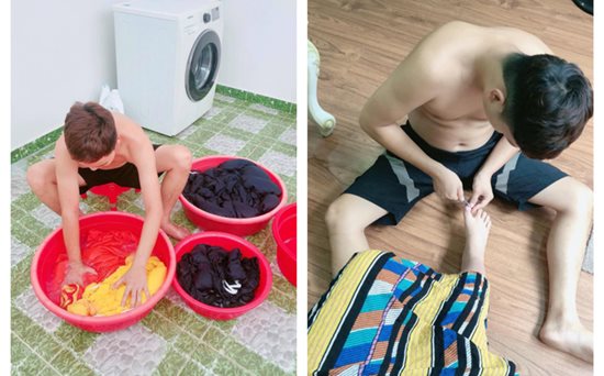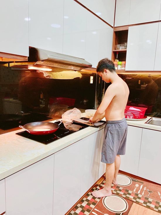 Mặc dù mình biết nấu ăn giặt đồ, từ bé lớp 5 đã làm được rồi vì là dân quê mà, nhưng anh vẫn giành làm và chưa bao giờ khó chịu hay e ngại với mọi người mà còn khoe nữa."