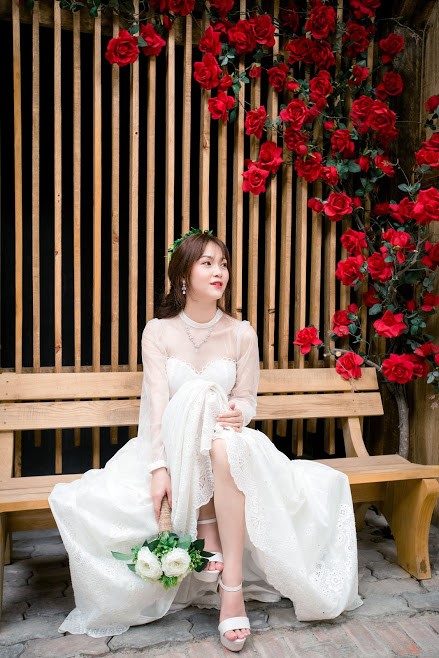 Nàng dâu Việt Hứa Đặng Thanh Trúc trong chiếc váy cưới tự thiết kế. |