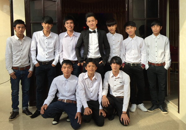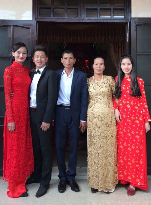 | Chú rể Khải An vô cùng điển trai trong ngày nạp lễ (theo thông tục ở làng quê Quảng Bình thì họ nhà trai phải qua nạp lễ và xin họ nhà gái cho phép và chấp thuận hai bên tiến tới hôn lễ). |