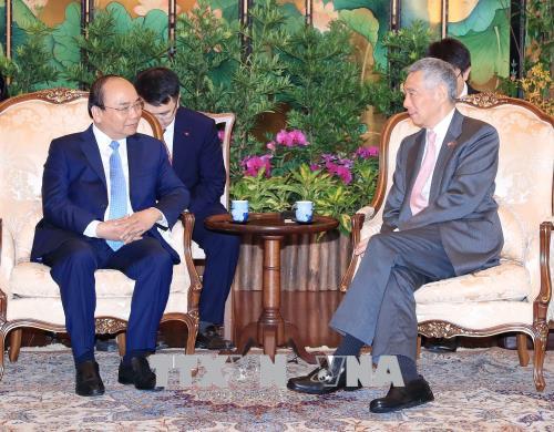 Thủ tướng Nguyễn Xuân Phúc và Thủ tướng Singapore Lý Hiển Long. Ảnh: Thống Nhất/TTXVN |