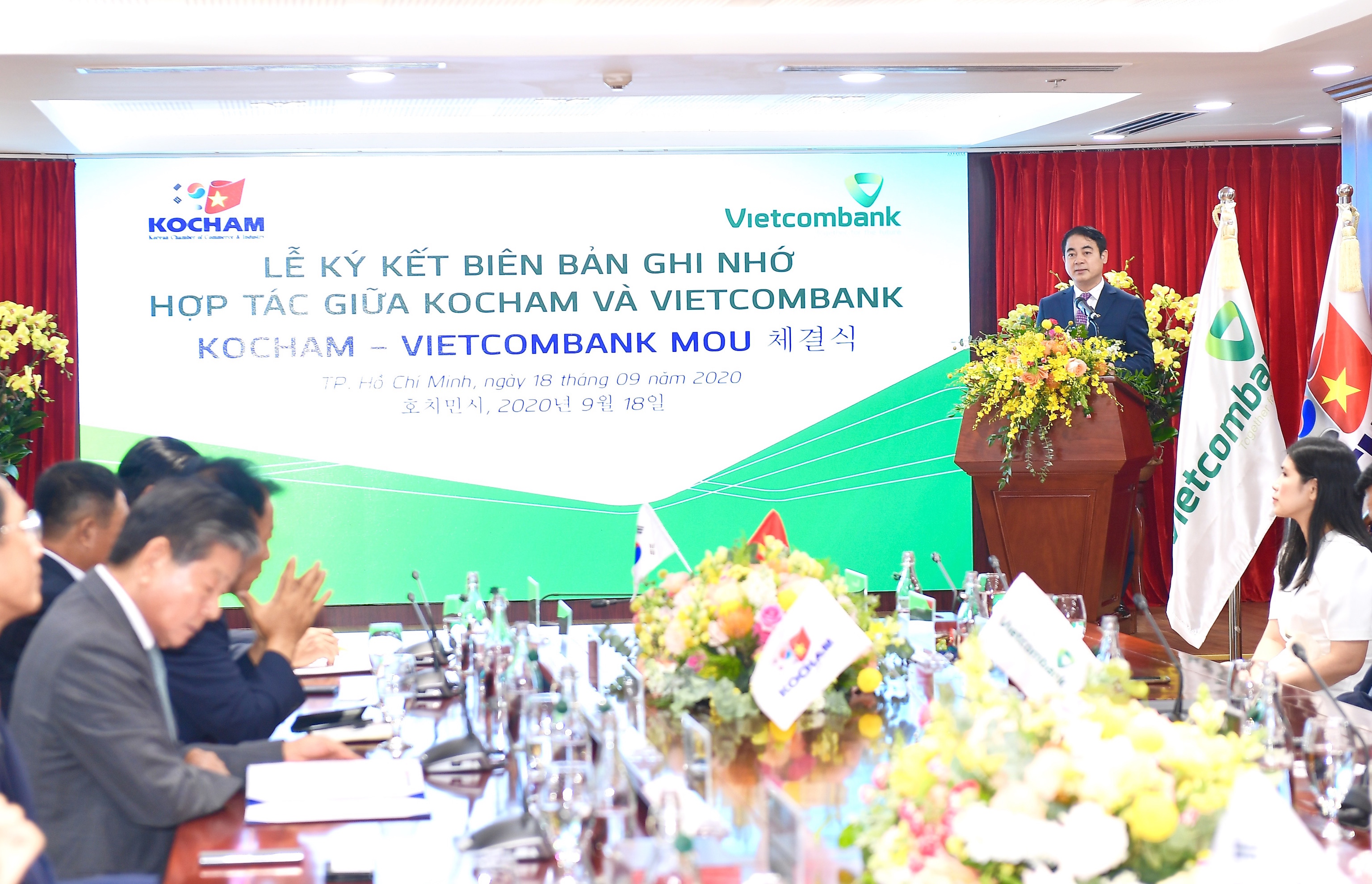 Chiều 18/9/2020, tại thành phố Hồ Chí Minh, đã diễn ra Lễ ký kết Biên bản ghi nhớ hợp tác giữa Ngân hàng TMCP Ngoại thương Việt Nam (Vietcombank) với Hiệp hội Thương mại và Công nghiệp Hàn Quốc tại TP Hồ Chí Minh (Kocham).