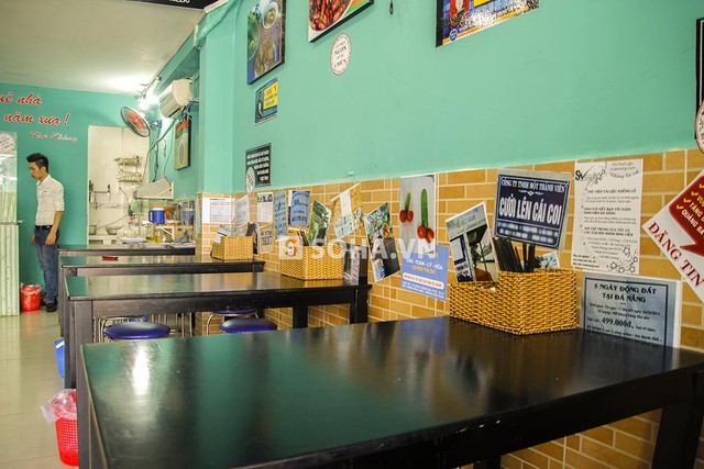 Tràn ngập trên tường quán là những mẩu quảng cáo, rao vặt và những hình ảnh hài hước sao chép từ internet. |