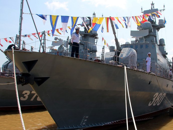 Lễ thượng cờ hai tàu tên lửa tấn công nhanh.Ảnh: Thanh niên. |