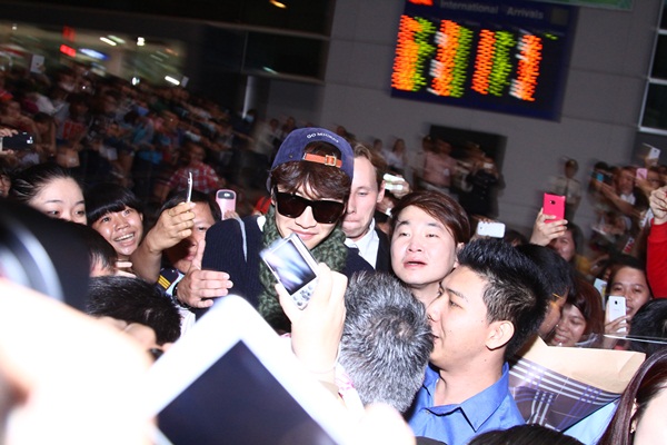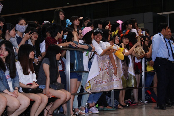 Các fans tụ tập rất đông tại sân bay chờ thần tượng. |