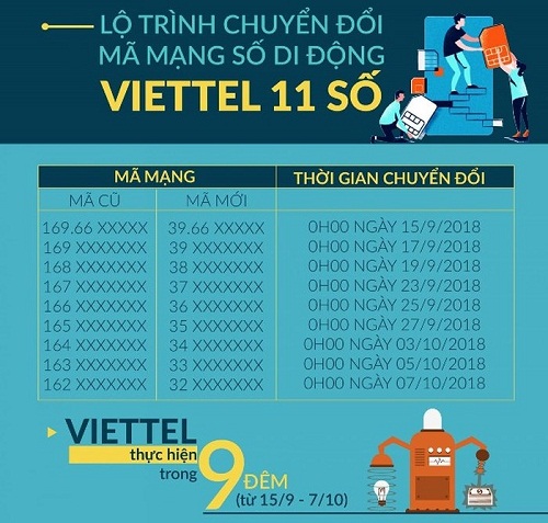 Thời gian chuyển đổi mã mạng số di động Viettel 11 số. |