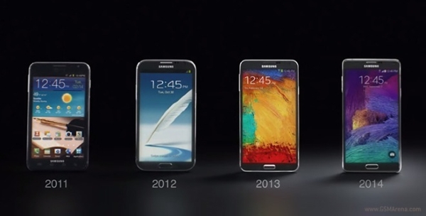 Dòng sản phẩm galaxy not qua các năm của Samsung. |