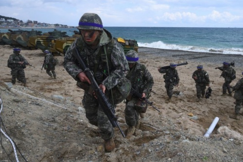 Thuỷ quân lục chiến Hàn Quốc trong cuộc tập trận chung với Mỹ năm 2017. Ảnh: AFP |