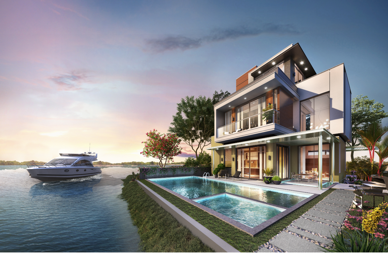 Kiến trúc Địa Trung Hải kéo con người lại gần với thiên nhiên – Phối cảnh Biệt thự view sông Grand River View Villa tại Aqua City |