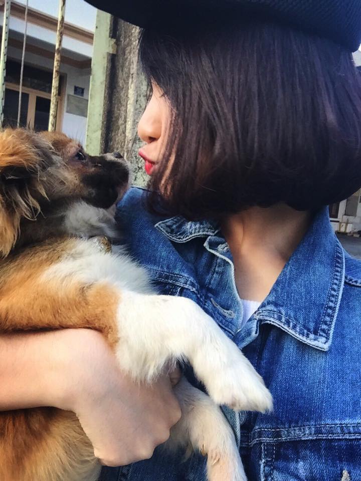 Cực đáng yêu khi chụp hình cùng thú cưng. |