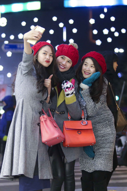 Gam màu trầm cùng những chiếc mũ len đỏ giúp các cô gái thu hút sự chú ý. |