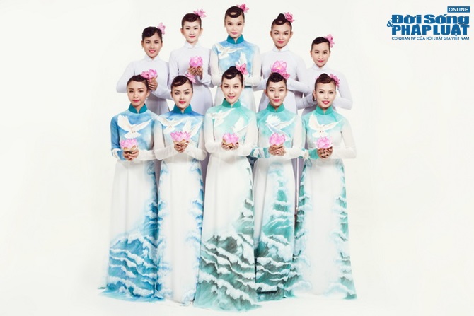 | Chiếc áo dài truyền thống với hình ảnh hoa sen làm ý tưởng chủ đạo đã tôn nét đẹp truyền thống của dân tộc Việt. |