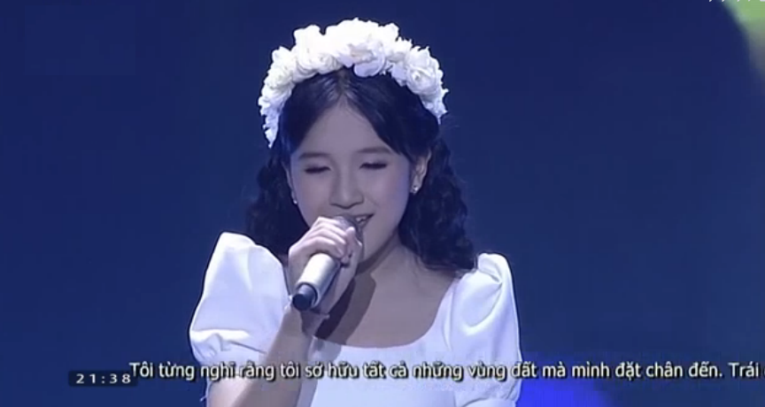 21h38: Thí sinh Trần Khánh Linh thể hiện ca khúc "Colors of the wind".