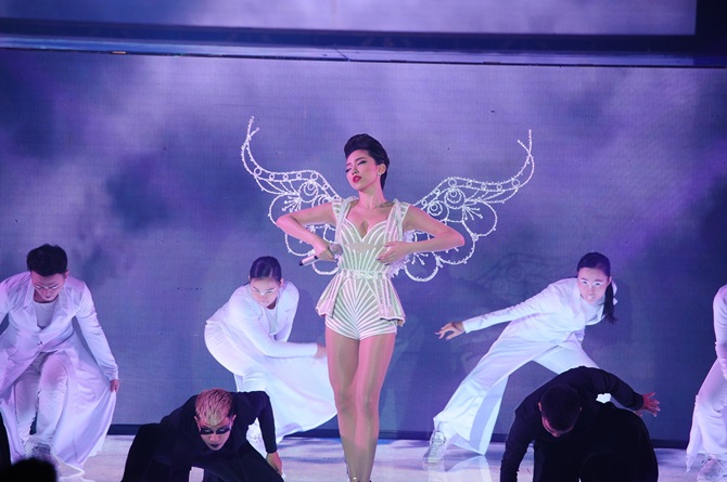 | Team ca sĩ Tóc Tiên với bộ ba: Tóc Tiên, Producer Long Halo và DJ Hoàng Touliver không kém cạnh với ca khúc "Angel". Đây là ca khúc đã từng được nữ ca sĩ thể hiện và ghi dấu ấn trong lòng khán giả. Với ngoại hình gợi cảm, phong cách trình diễn bốc lửa kết hợp với giọng hát điêu luyện, Tóc Tiên đã mang đến những bất ngờ ấn tượng cho khán giả. Mặc dù lần đầu tiên tham gia một chương trình truyền hình “mới toanh” trên sóng truyền hình sau nhiều năm về nước và bản thân khiêm tốn nhận mình là “lính mới” nhưng Tóc Tiên đã thể hiện rất “chất” và mang đến sự sôi động cuồng nhiệt ngay trong đêm mở màn. |