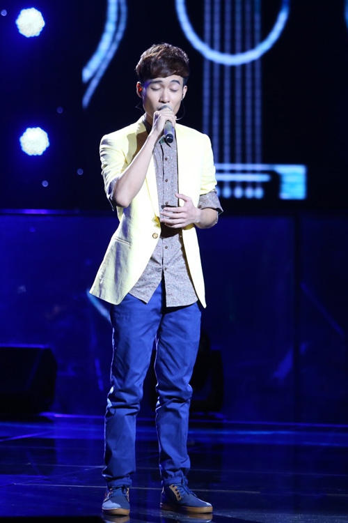 22h20: Đăng Quang đến từ đội HLV Tuấn Hưng thể hiện ca khúc "Cha và mẹ", một sáng tác của nhạc sĩ Nông Tiến Bắc.