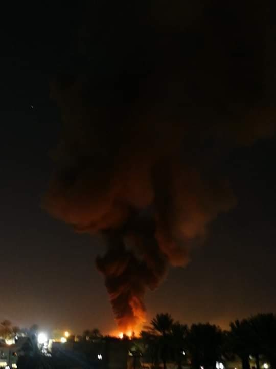 Khói lửa bốc lên sau khi tên lửa Lybia tấn công căn cứ của Thổ Nhĩ Kỳ. Ảnh: Twitter |