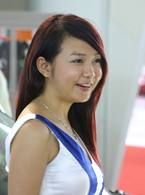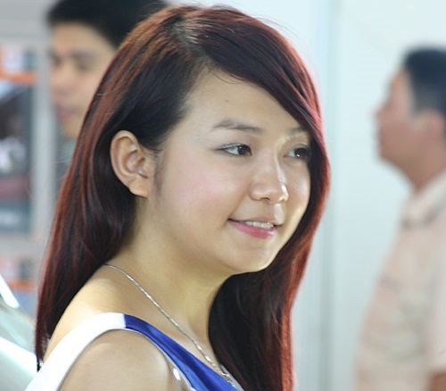 Thu Hương từng có thời gian làm PG cho một số nhãn hàng. Thủa đó, thân hình cô nàng cũng khá tròn trịa và sở hữu nước da ngăm đen. | | Bức hình được cho là chụp vào năm 2008 khi Thu Hương làm PG tại một triển lãm xe. |