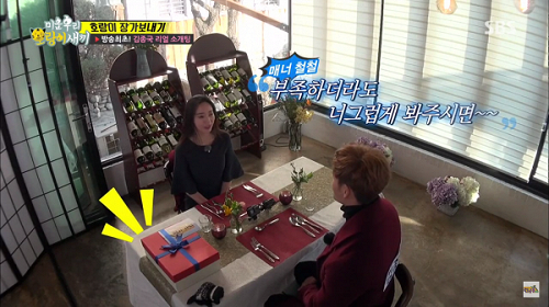 Sau một ngày hẹn hò trong ngại ngùng, Kim Joong Kook và "bạn gái" đã cùng thưởng thức một buổi ăn tối lãng mạn trên thuyền tại sông Hàn.