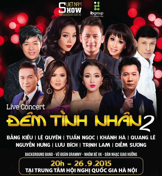 | Poster đêm nhạc đêm tình nhân 2 với dàn sao nổi tiếng hải ngoại. |