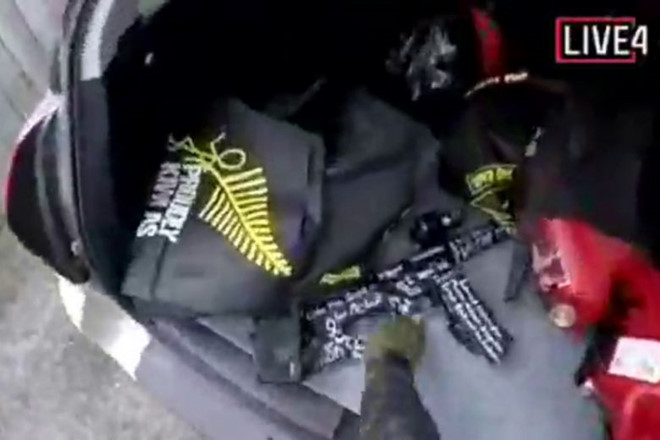 Đoạn video cũng cho thấy bên trong xe của hung thủ có 2 khẩu súng trường màu đen, trên súng có viết chữ màu trắng. Trang Stuff.co.nz đưa tin trên các khẩu súng có tên của hai hung thủ xả súng tại Ý và Canada là “Luca Traini” và “Alexandre Bissonette”.