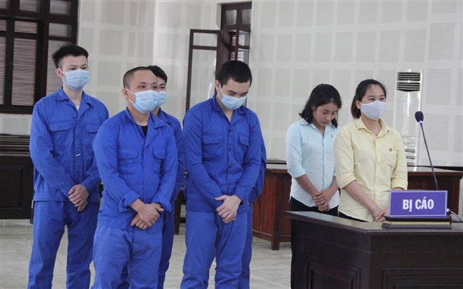 Các bị cáo Phạm Văn Quân (SN 1992, trú huyện Vĩnh Bảo, TP Hải Phòng), Cao Xuân Dương (SN 1995, trú huyện Lương Sơn, tỉnh Hoà Bình); Nguyễn Văn Tình (SN 1992, trú huyện Lương Sơn, tỉnh Hoà Bình); Trần Văn Mạnh (SN 1997, trú TP Hạ Long, tỉnh Quảng Ninh); Trần Ngọc Sơn (SN 1995, trú huyện Quế Sơn, tỉnh Quảng Nam) cùng tội “Môi giới mại dâm”.