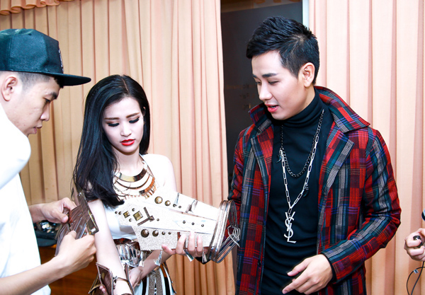 Nguyên Khang và Giang Hồng Ngọc trong hậu trường The Remix. |