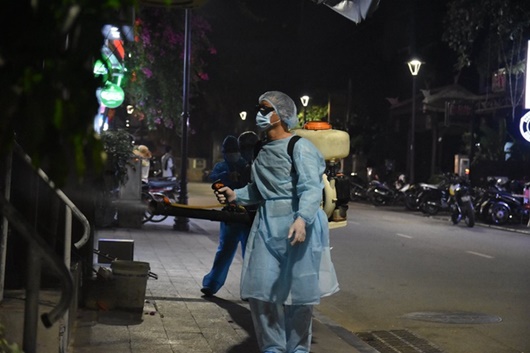 Khu phố nơi có bệnh nhân nhiễm Covid-19 thứ 30 và 49 được tiêu độc khử trùng. Ảnh: Tri thức trực tuyến |
