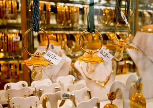 | Những núm vú giả cho trẻ con được dát vàng. |