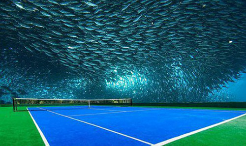 | Sân tennis được làm dưới biển để tránh ánh nắng chói chang. |