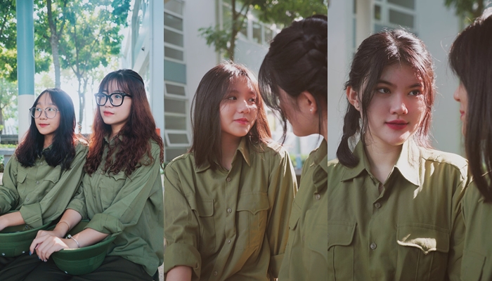 Cô bạn xinh xắn trong đồng phục quân sự này là Huỳnh Khả Vy (sinh năm 1999, tại Cần Thơ) hiện là sinh viên ngành Dược, ĐH Y Dược Cần Thơ. |