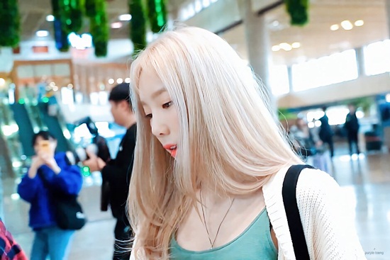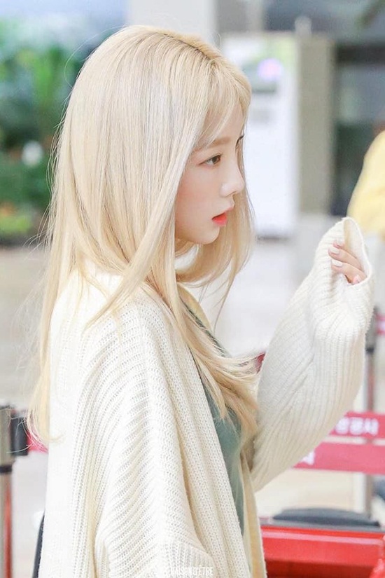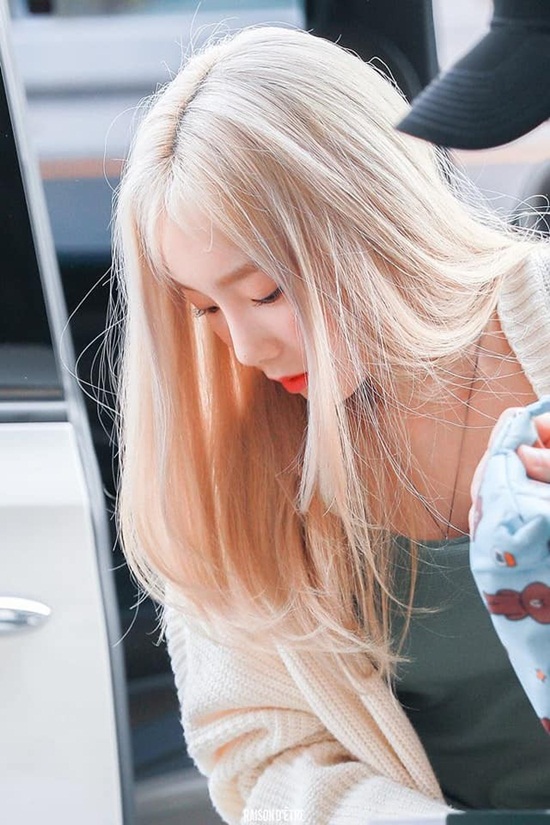 Mái tóc vàng của Taeyeon cực kỳ hợp với làn da trắng muốt và gương mặt thanh thoát của cô. |