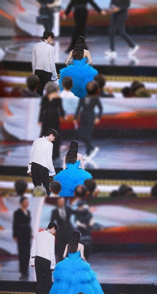 Hình ảnh chụp từ phía sau của cặp chị em Triệu Lệ Dĩnh - Vương Nhất Bác cũng rất nổi bật và thu hút. |